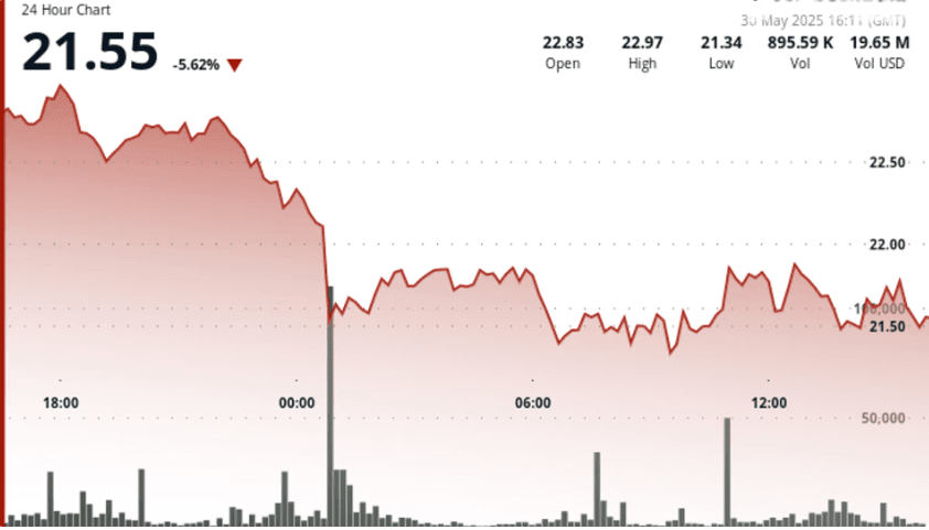 🧱 Résistance à 22,35 $ avec un volume de trading de 2,24 M