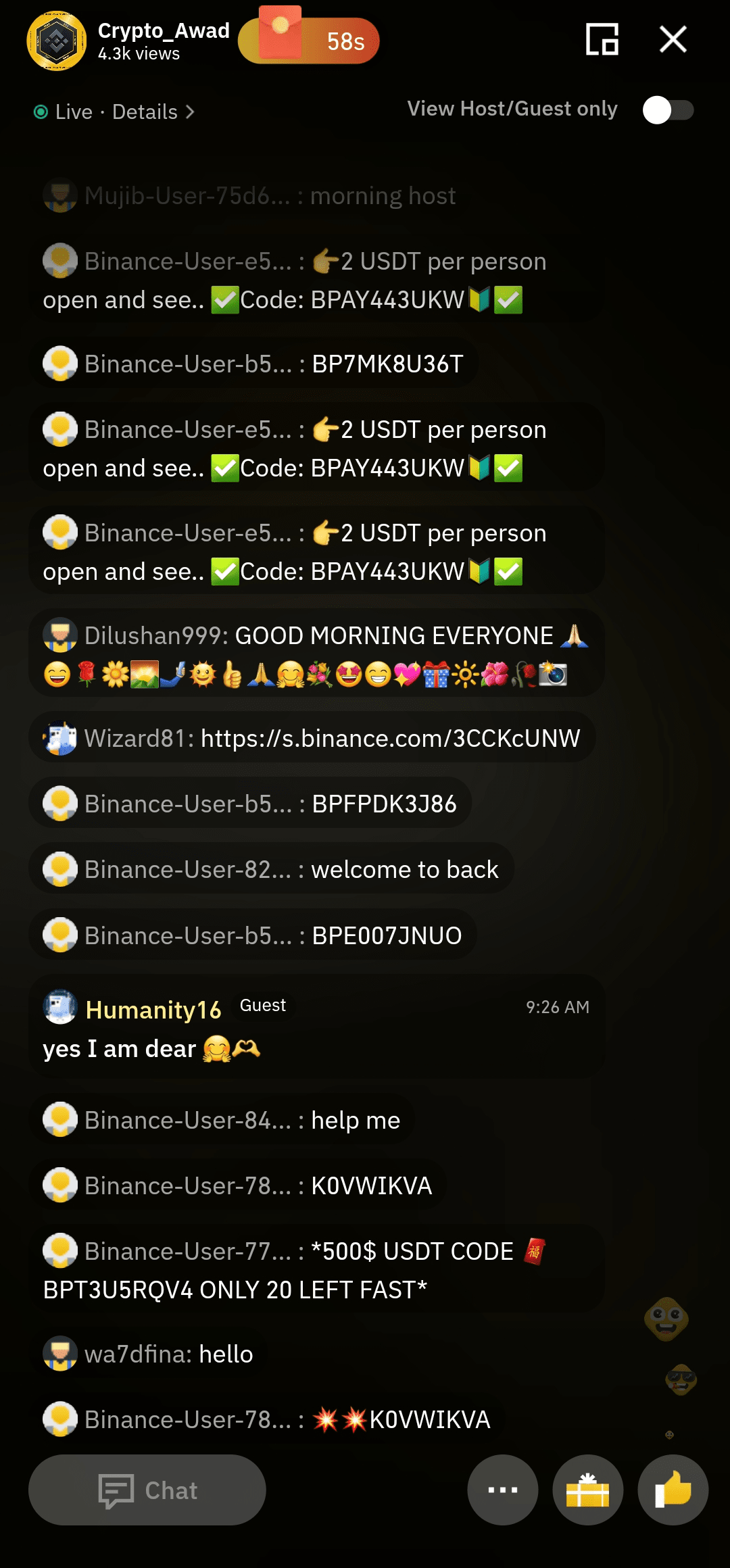 Timing Red Pocket : Une montre de 5/10 minutes fonctionnera sur le côté gauche du direct, vous cliquerez dessus et vous verrez Enter The Designated Comment écrit dessus, si vous cliquez dessus, vous serez inclus dans la récompense et dès que le temps est écoulé, une boîte apparaîtra sur le skin, si vous l'ouvrez, la récompense s'affichera dans votre portefeuille. Pensez à ouvrir la boîte très rapidement.