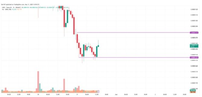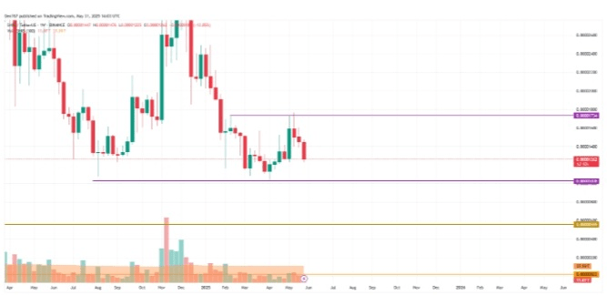 Sur le plus grand délai, le prix de la monnaie meme a réalisé une fausse cassure du support formé de 0,00001230 $.
