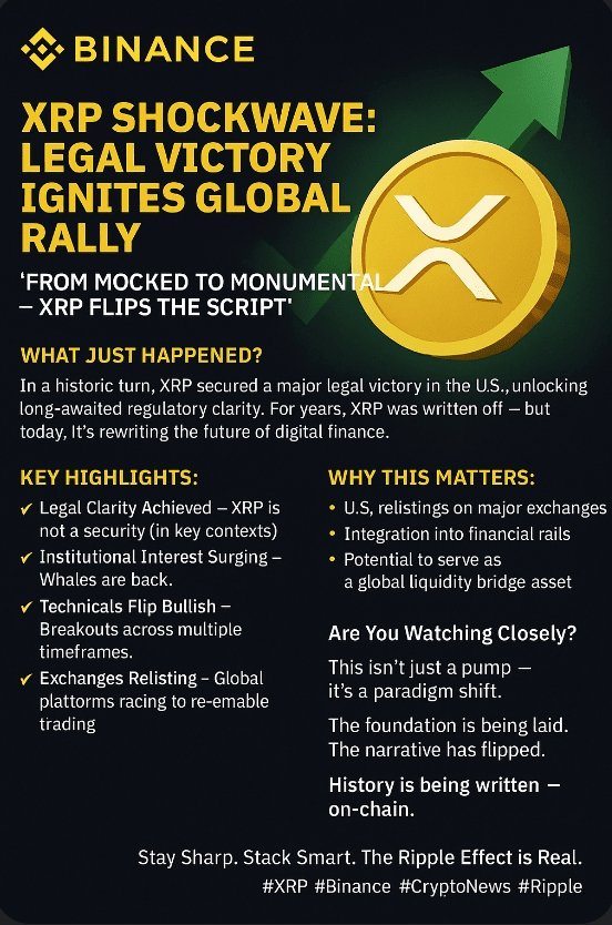 Dans un tournant historique, XRP a obtenu une victoire juridique majeure aux Ătats-Unis, dĂ©bloquant une clartĂ© rĂ©glementaire tant attendue. Pendant des annĂ©es, XRP a Ă©tĂ© Ă©cartĂ© â mais aujourd'hui, il réécrit l'avenir de la finance numĂ©rique.