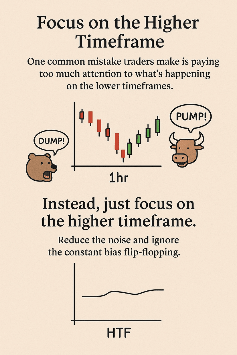 Une des plus grandes erreurs que font les nouveaux et même les traders expérimentés est de s'obséder sur les périodes inférieures—en changeant constamment leur biais en fonction de chaque bougie de 15 minutes ou d'une heure.