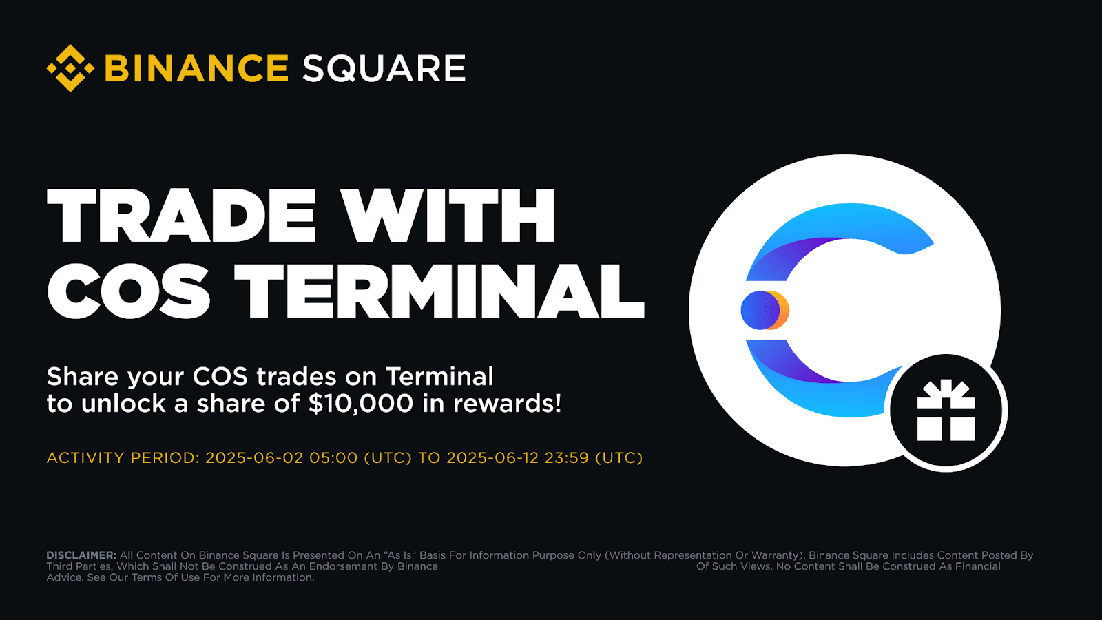 Binance Square est heureux de présenter Trade With COS Terminal, un défi de partage de trading en partenariat avec Contentos, où les utilisateurs qui partagent leurs transactions COS via COS Terminal peuvent gagner des récompenses. Les participants éligibles peuvent avoir une chance de débloquer une part de 10 000 $ en récompenses de bons de tokens COS !