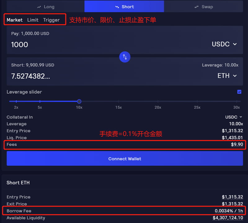 GMX交易界面