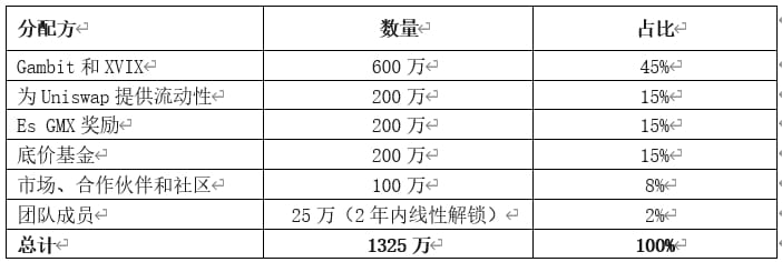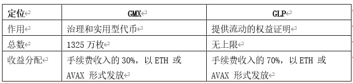 GMX采用双币模型:GLP作为流动性证明,供应没有上限;GMX作为治理和实用型代币。持有者可提议议案并进行投票代币,总量为1325万枚,其中799万枚已流通(60%),GMX持有者可DAO投票提案增加GMX总供应量。