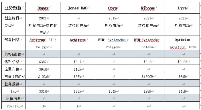 En tant que pionnier des protocoles d’options, Opyn possède toujours le TVL le plus élevé, mais ses fonds sont principalement en ETH. En revanche, les avantages de Dopex résident dans la réduction du gaz sur L2, l'innovation des produits et la capacité de coopérer avec les riches projets DeFi d'Arbitrum ; Jones DAO utilise des options pour améliorer les revenus de divers actifs LP en tant que produit structuré, abaissant encore le seuil d'investissement dans options.