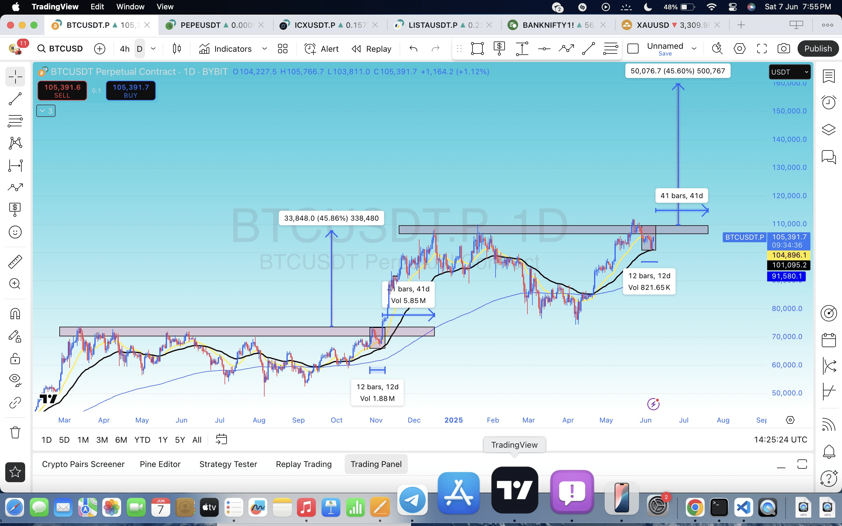 ✅ En 2024, BTC a donné un mouvement de 45 % en exactement 41 jours après une forte rupture de consolidation.