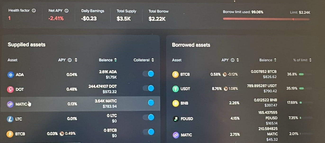 L'attaquant ne pouvait pas accéder à beaucoup de fonds car ils étaient verrouillés dans Venus, une plateforme de prêt. Dans Venus, les utilisateurs fournissent des jetons en garantie et empruntent contre eux. Mais si votre ratio dette/garantie devient trop élevé, vos actifs deviennent éligibles à la liquidation — ce qui prend du temps.