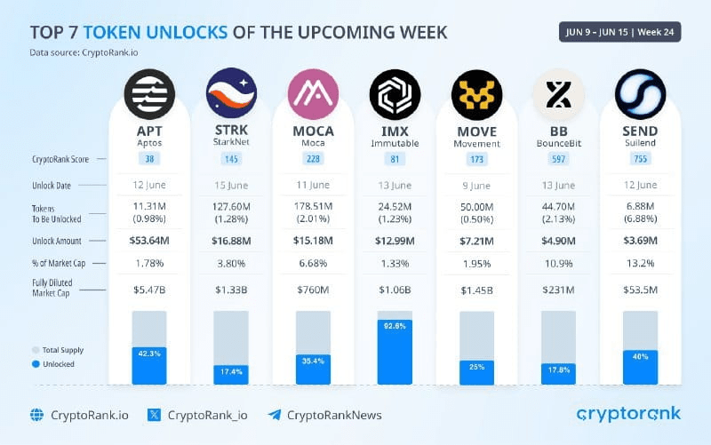 Rappelez-vous : de grands projets comme Aptos ($APT) et Starknet ($STRK) ont de grandes communautés et des volumes de trading importants. Bien que 53 millions de dollars semble énorme, cela pourrait ne pas faire chuter le prix *autant* que pour un projet plus petit. Néanmoins, c'est significatif !