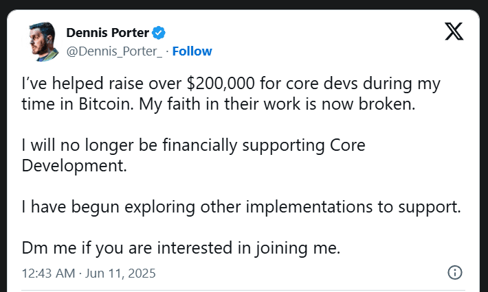 Les critiques avertissent que lever la limite OP_RETURN pourrait ouvrir la voie à des “spam” blockchain, car plus de données peuvent être infiltrées sur la blockchain. Cela peut nuire à la performance du réseau et contrecarrer la vision monétaire peer-to-peer originale du protocole. Un opposant vocal sur les réseaux sociaux a averti : “Si vous utilisez encore Core, je vous exhorte très fortement à passer à Bitcoin Knots ou à ne pas mettre à jour Core—Bitcoin Core est maintenant entièrement malveillant”.