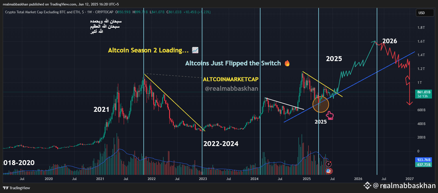 Les altcoins ont été piégés sous cette tendance baissière jaune depuis toujours, mais devinez quoi ? Nous venons de sortir, proprement et fortement 🟢 Et regardez de près, ce rebond depuis la 200MA 👀? C'est du carburant de fusée classique. Le chemin à venir pourrait être explosif, mais seulement pour ceux qui survivent à la volatilité et attendent vraiment.