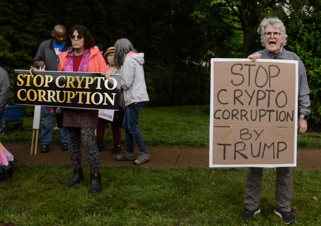 Des groupes de surveillance, des démocrates du Congrès et certains républicains ont lancé une tempête de critiques contre Trump pour avoir promu son propre jeton de mème, $Trump, un jeton crypto de nouveauté sans valeur inhérente, en organisant personnellement un dîner le 22 mai dans son club de golf en Virginie pour les 220 plus grands acheteurs de $Trump et une « réception » privée pour les 25 plus grands acheteurs.