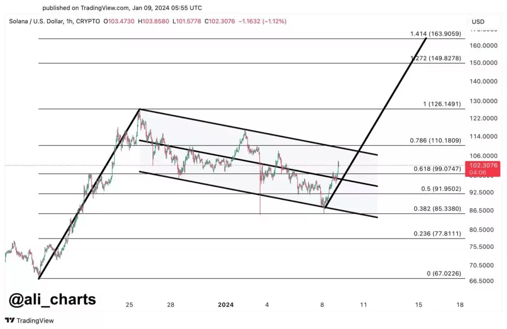 Headavnee palli BTC n'a pas perdu face à Solana, car la société a réussi à franchir une étape importante en une journée. Solana montre des signes d'un potentiel drapeau haussier. Selon les experts Ali Maptineca, l'approbation du concours à 110 dollars peut être considérée comme un catalyseur potentiel pour un mouvement significatif. Si cette tendance se poursuit, il est possible que Solana se rapproche du niveau cible de 16Z $.