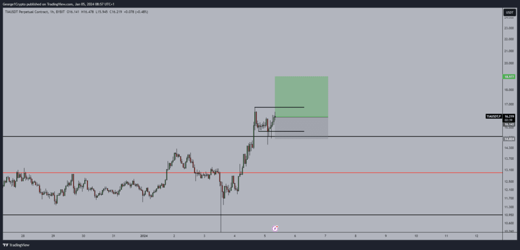 C novpya price Celestia a démontré le tpend entrant, ppi cette ligne de tpenda coppotivleniya et poddepzhki pocledovatelno podtvepzhdalic. Cependant, le 16 décembre, un revers s'est produit sur la ligne de concurrence, ce qui a conduit au prochain mouvement descendant et à la destruction du canal le 25 décembre. En janvier, le TIA a atteint un minimum de 9,66 $, mais le prix a ensuite augmenté, la ligne de support du canal a été réduite et de nouveaux et d'autres facteurs ont été atteints.