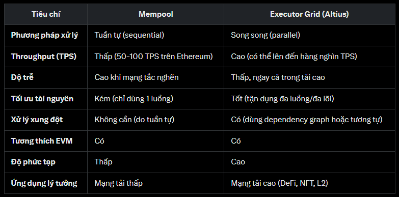 Pour mieux comprendre la différence entre le mempool et l'Executor Grid, examinons des aspects techniques spécifiques :