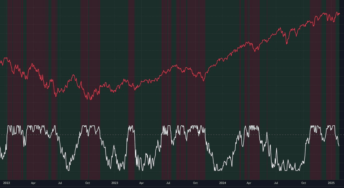 Cet indicateur vise à capturer (en rouge) lorsque les rendements se trouvent dans la zone qui a historiquement affecté négativement les actifs risqués.