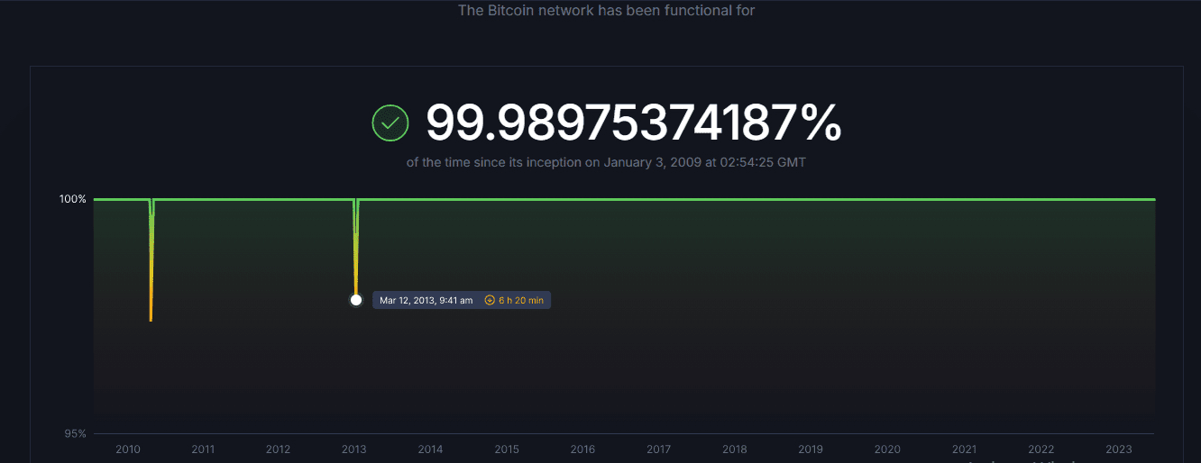Selon les données de Bitbo, le réseau Bitcoin fonctionne sans interruption depuis sa création le 3 janvier 2009, à 02:54:25 GMT. Ce record de disponibilité n'a été entaché que par deux incidents isolés dans ses débuts - l'un en 2010 et l'autre en 2013 - soulignant la résilience et la robustesse sans précédent du réseau. Ces récents exploits renforcent davantage la position du BTC en tant qu'actif numérique d'une stabilité durable et d'une maturité croissante au sein du paysage financier mondial.
