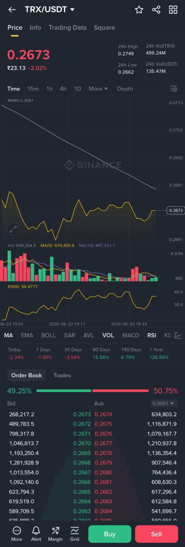 Le prix est actuellement de 0,266932 USD avec un changement de -0,01 USD (-0,02%) par rapport à la clôture précédente.
