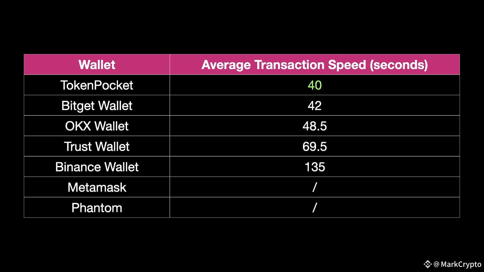 Fastest (40s): TokenPocket (performance exceeds market average)