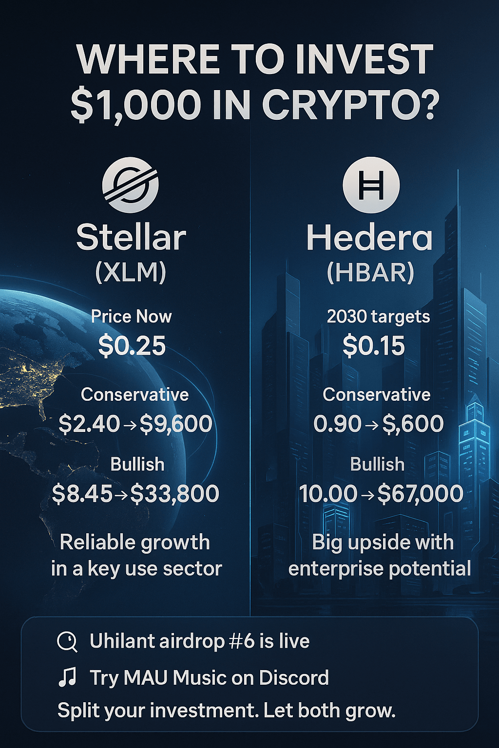 #Crypto2025 #XLM #HBAR #Uhilant #MAUMusic #Altcoins #InvestSmart