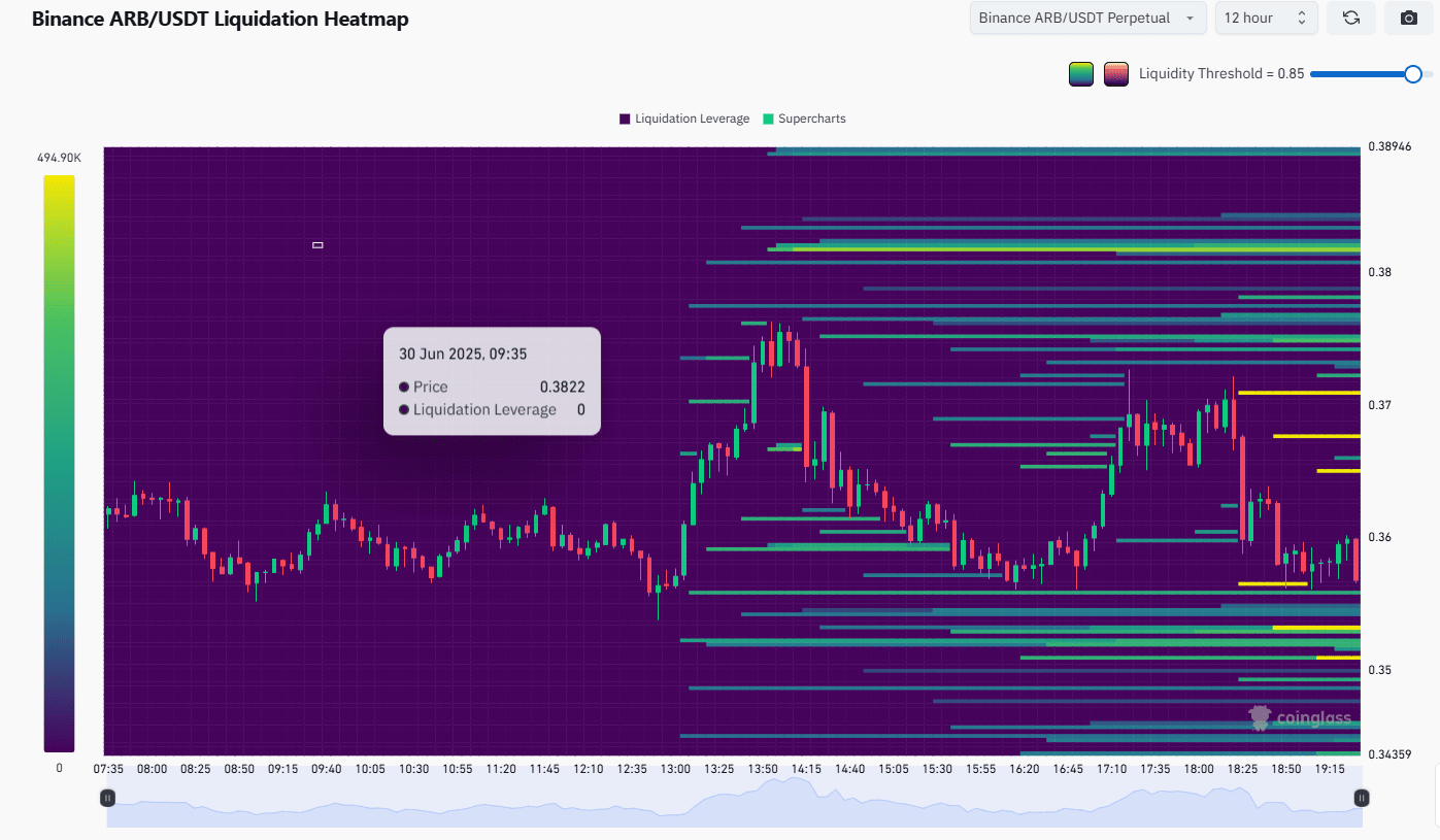 Sur la carte thermique de liquidation, nous pouvons voir que le marché descend pour saisir la liquidité vers le bas. Nous obtenons donc une autre confirmation que l'ARB va descendre.