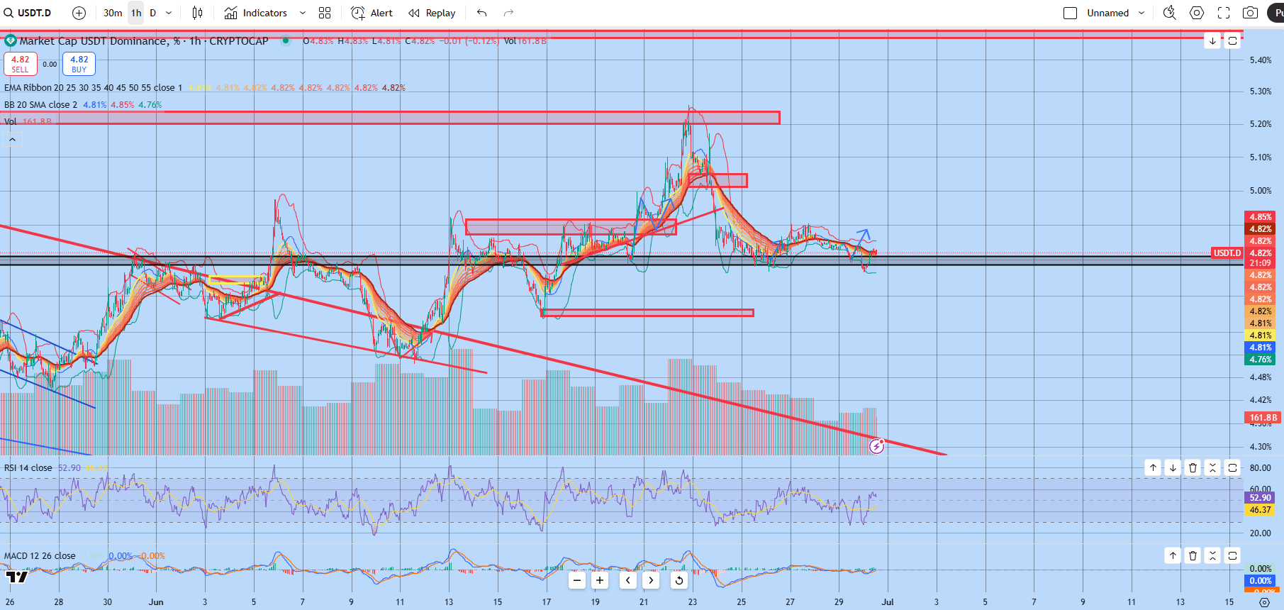 LA DOMINANCE USDT est haussière, donc il y aura une chute sur l'ensemble du marché crypto.