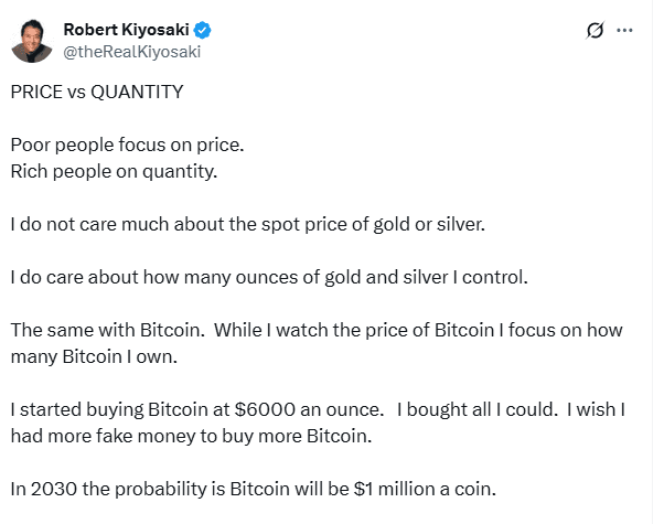 Kiyosaki a prédit que le BTC sera bientôt une pièce à 1 million de dollars.
