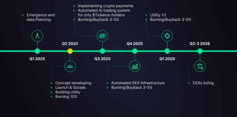 InitiativeStatutPaiements Crypto Activés✅ Mise en ligne ce trimestreSystème de Trading AI Privé✅ Tests bêta en coursBrûlage/Rachat de Tokens 3–5 %✅ Prévu pour achèvement