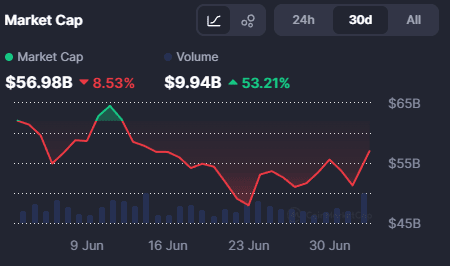 Capitalisation totale : a chuté de 8,53 %, se situant à 56,98 milliards USD.