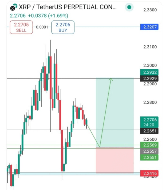 Nous surveillons de près XRP pour une opportunité d'achat potentielle alors qu'il approche d'une zone de support cruciale près de 2.2569. Le plan est de capitaliser sur un retracement sain vers cette zone de demande, en nous positionnant pour profiter de la prochaine jambe à la hausse si le niveau confirme sa force.