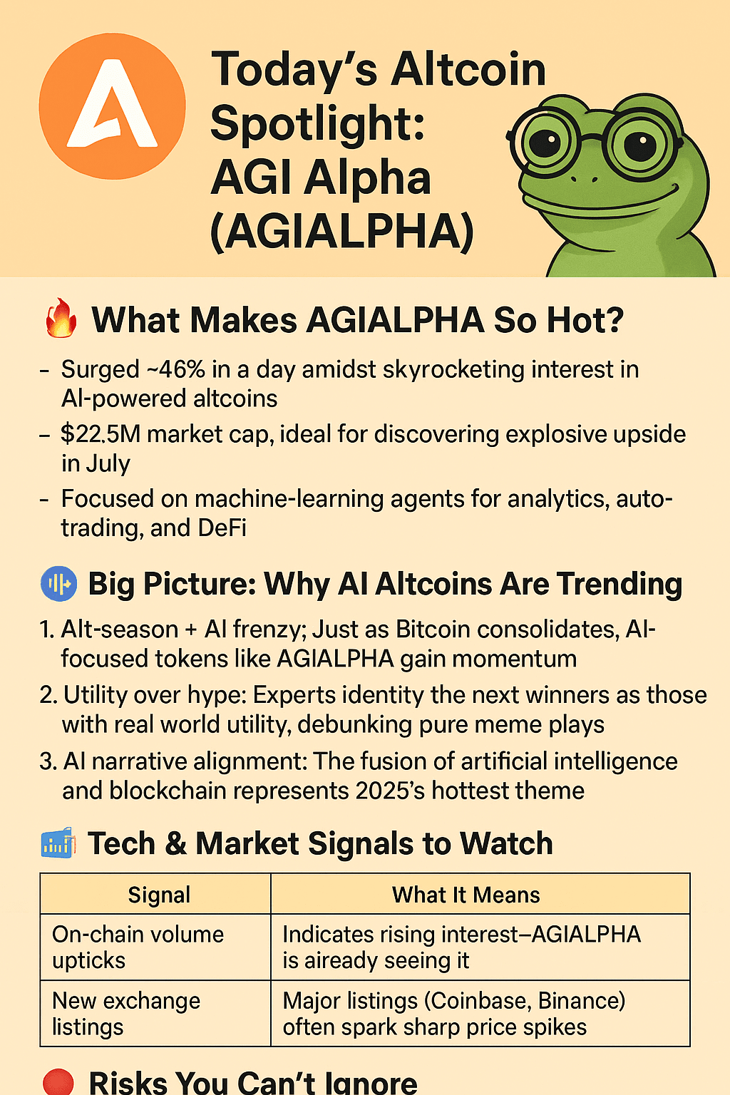 Votre dernier article a échoué car il manquait d'un bon accroche. Changeons cela. Voici un article concis et engageant sur AGI Alpha, surfant sur la vague IA + crypto en juillet 2025 :
