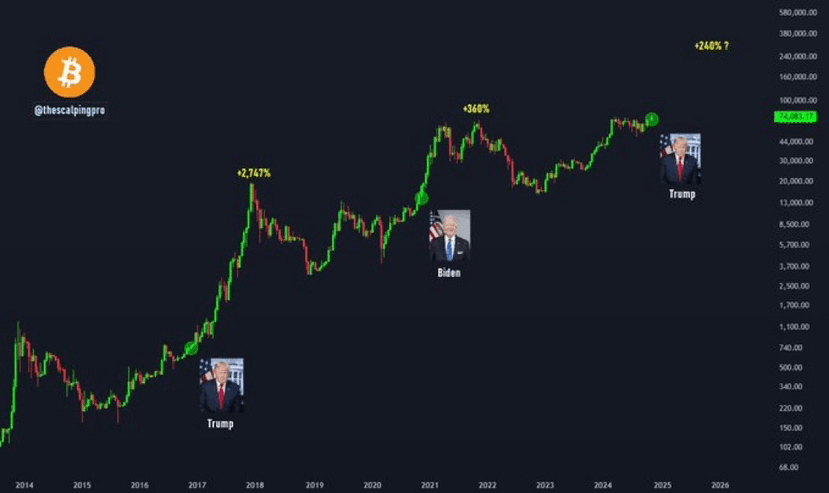 Tous les quatre ans, à l'approche des élections, les marchés boursiers et crypto ont tendance à pomper.