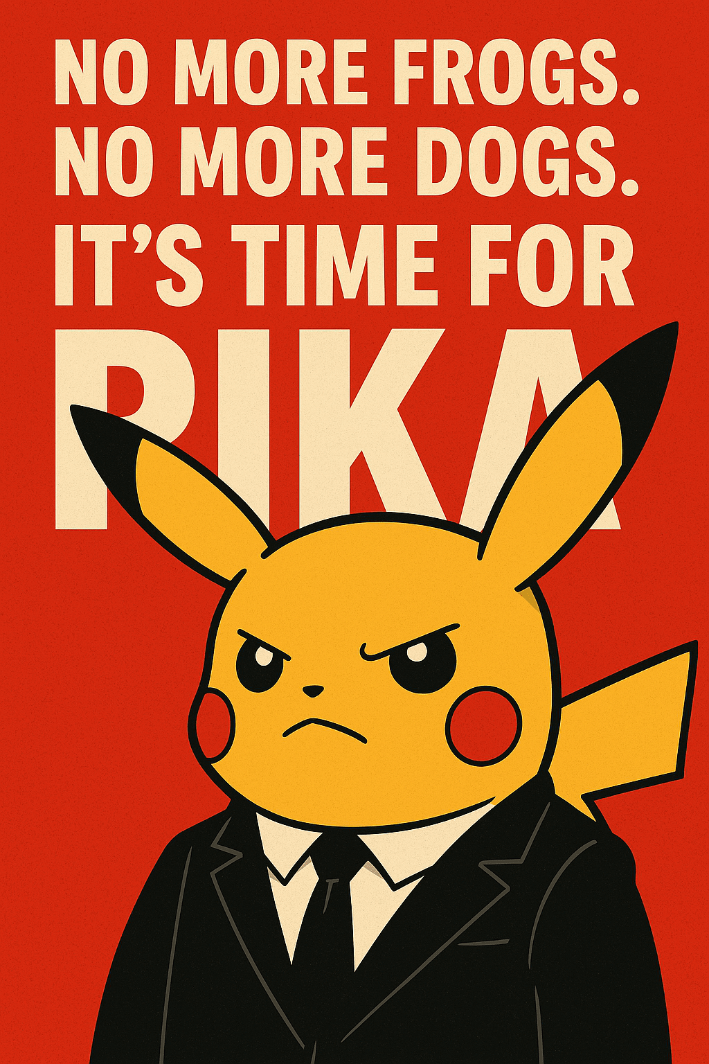 "PLUS DE CHIENS. PLUS DE RENARDS. IL EST TEMPS POUR PIKA ! PIKA !! PIKACHU !!!" ⚡🐭👑