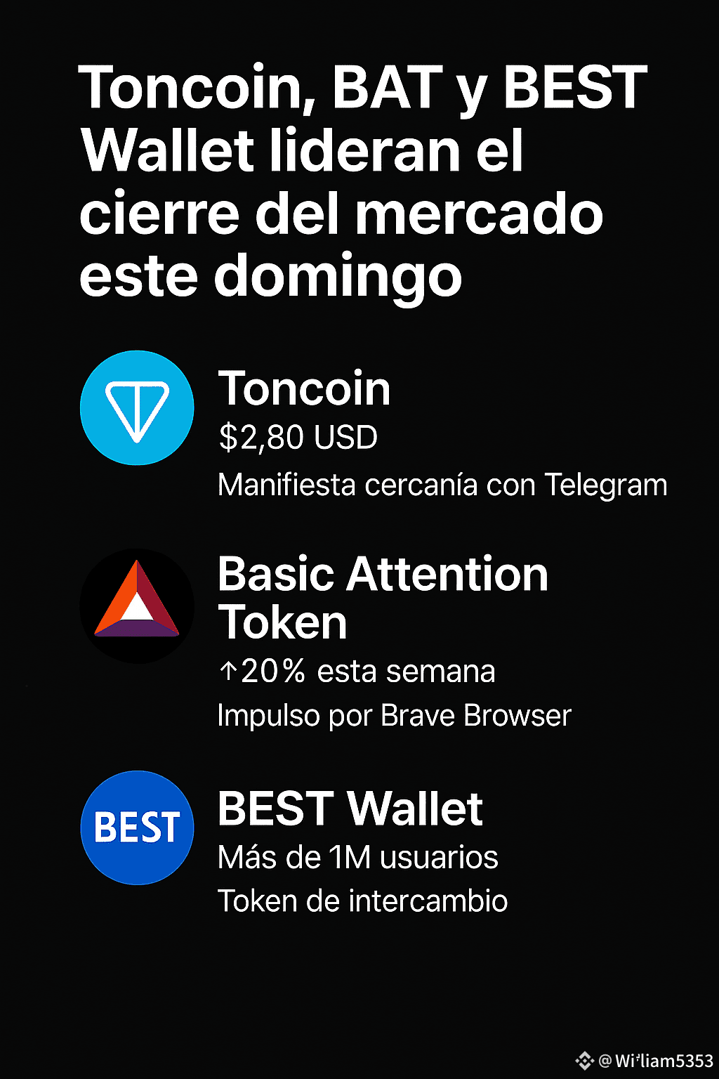 - Basic Attention Token (BAT) sube casi 20% esta semana, impulsado por la integración con Cardano y el crecimiento de Brave Browser (91M usuarios activos).