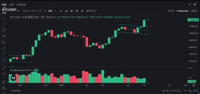 Petit résumé : le BTC continue d'être haussier la semaine prochaine, le prochain prix cible est autour de 130 000, puis autour de 150 000. L'Ethereum suit la montée du Bitcoin, le prix cible final est autour de 4000 dollars.