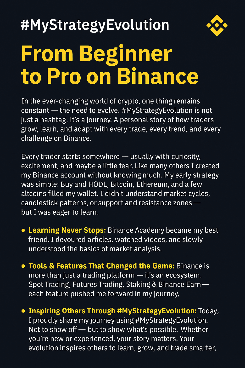 Dans le paysage en constante Ă©volution de la cryptomonnaie, avoir une stratĂ©gie de trading solide est essentiel pour rĂ©ussir. #MonĂvolutionStratĂ©gique consiste Ă cĂ©lĂ©brer la croissance continue et l'apprentissage que chaque trader traverse sur Binance â de ce tout premier trade Ă la maĂźtrise des techniques plus avancĂ©es.