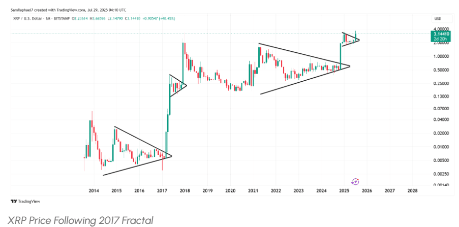 💥Plusieurs analystes croient que XRP suit le fractal de 2017