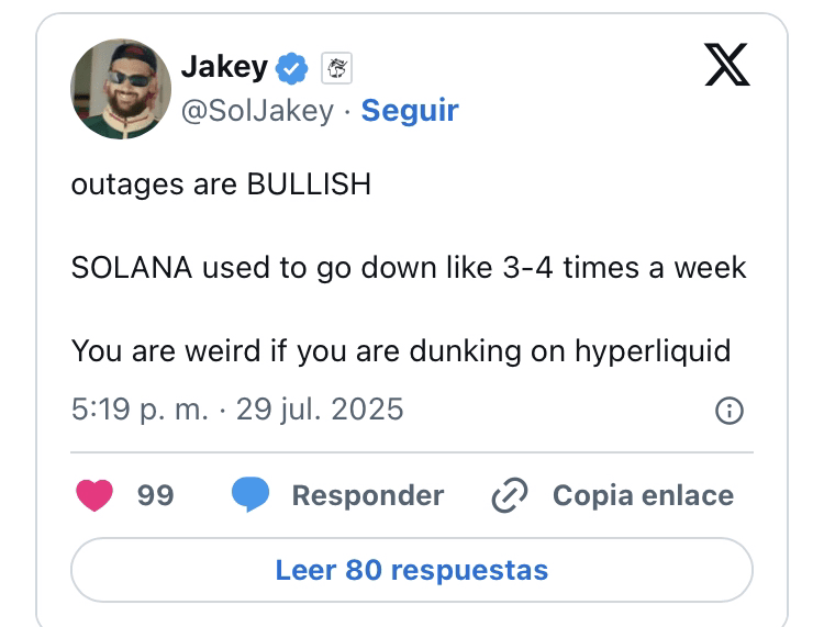 Selon les messages Discord des développeurs de Hyperliquid, cette interruption n'a duré que quelques minutes. Cependant, la communauté de Hyperliquid a exprimé son mécontentement à l'égard de la plateforme de trading décentralisée et son inquiétude pour leurs comptes. Certains comptes ont même prédit que cette panne pourrait perturber des milliards de dollars de positions de vente à découvert.