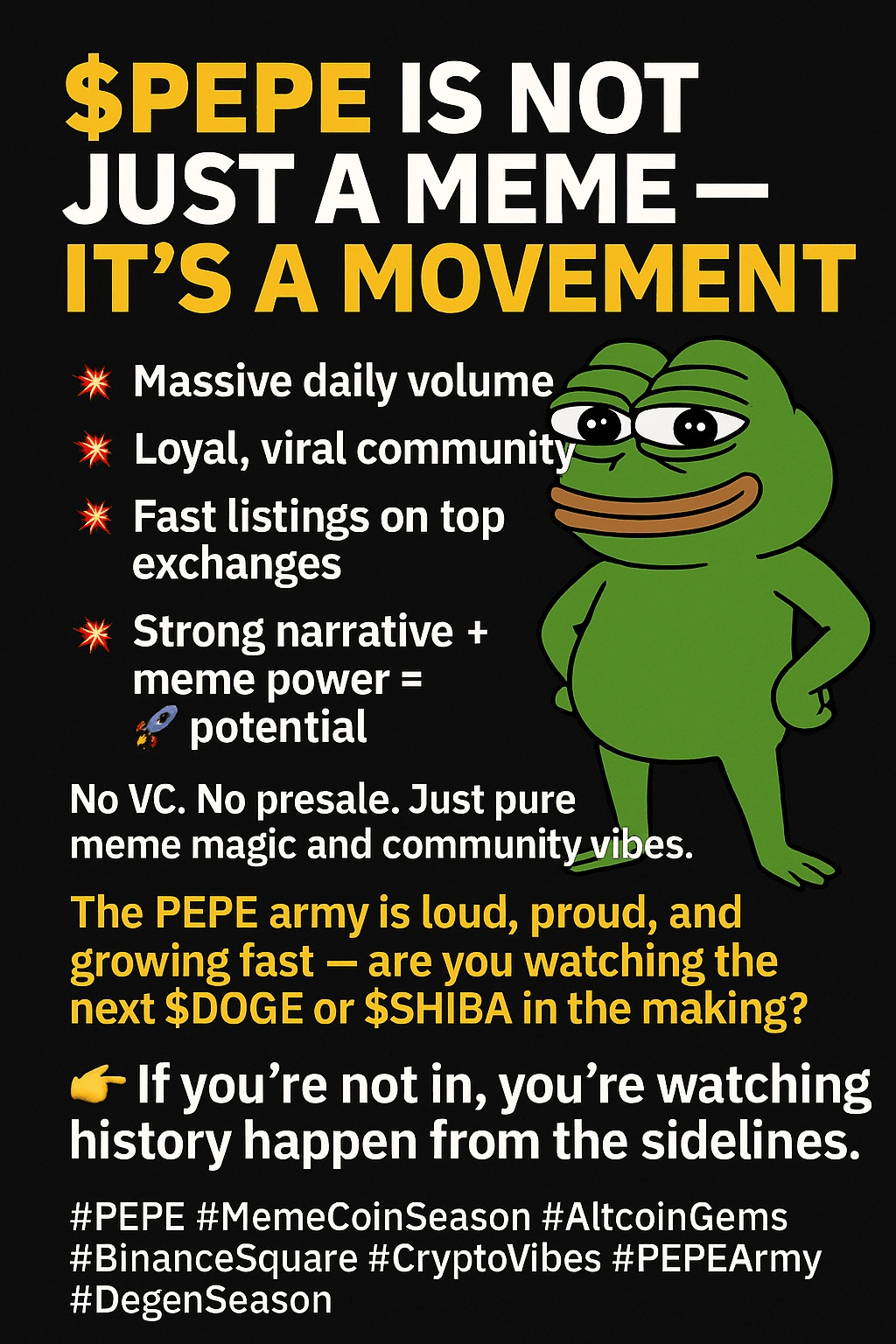 #PEPE #MemeCoinSeason #GemsAltcoin #CryptoDegens #BinanceSquare #PEPEArmy #ViralCrypto #NEXTDOGE #NextShiba #DegenLife #Write2Earn!