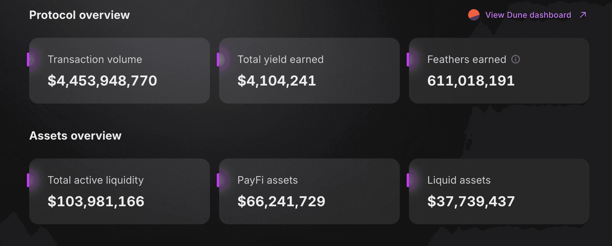 Mode Classique : rendement réel stable à deux chiffres (actuellement 10,5% APY en USDC) + Feathers de base