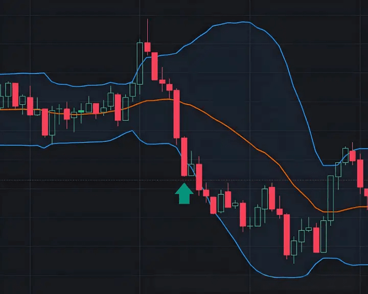 Bande inférieure : obtenue en soustrayant deux écarts types de la bande médiane. Elle représente un niveau de support, lorsque le prix baisse près de la bande inférieure, il peut recevoir un soutien
