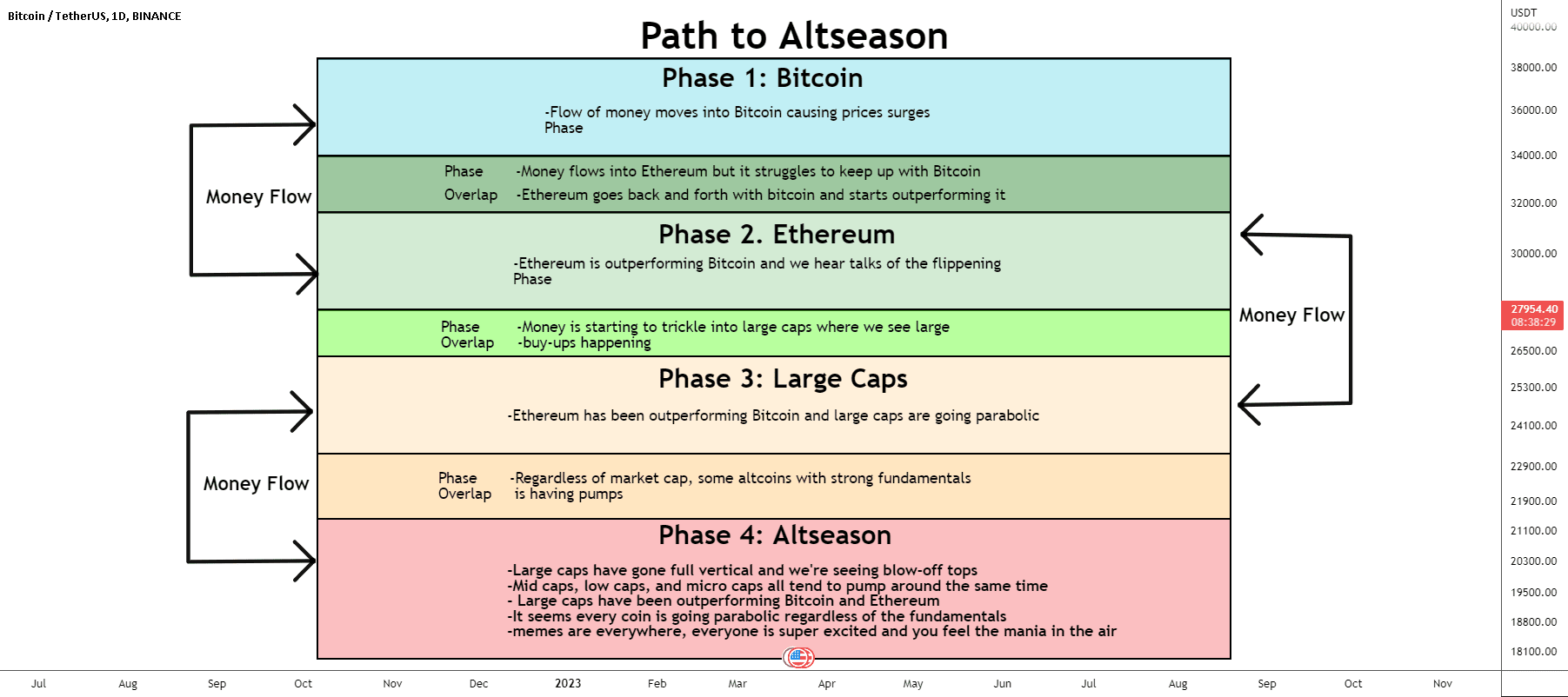 Mais décomposons comment repérer que nous sommes dans la phase de saison des altcoins.👇