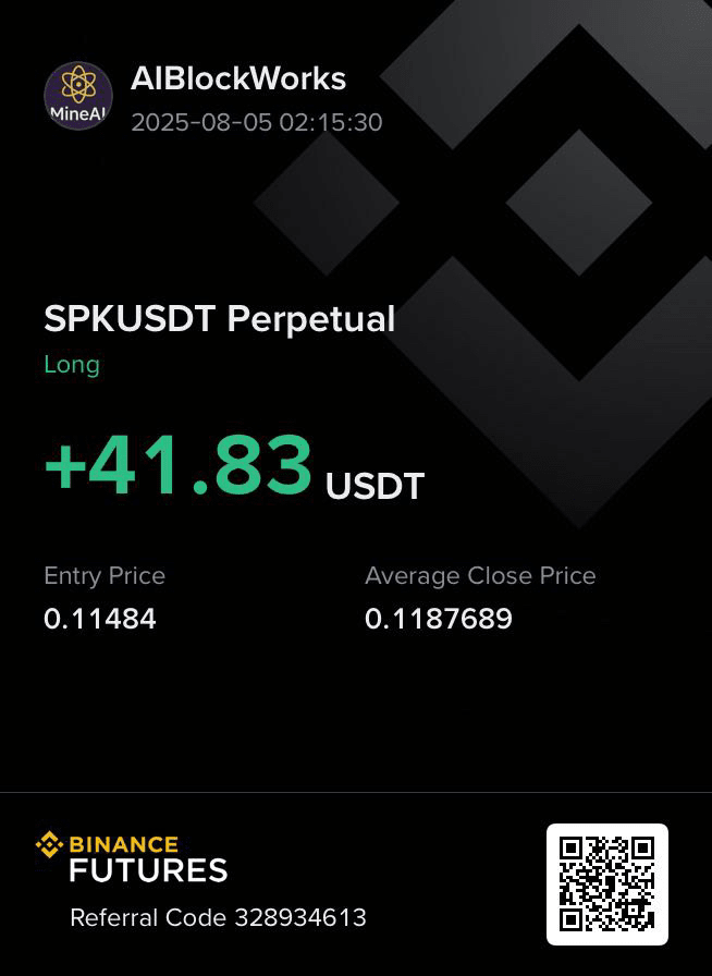 Un autre trade rĂ©ussi sur Binance Futures ! J'ai pris une position longue sur $SPK SPKUSDT PerpĂ©tuel, entrant Ă  0,11484 $ et fermant autour de 0,11876 $, sĂ©curisant un profit net de 41,83 USDT. 🚀