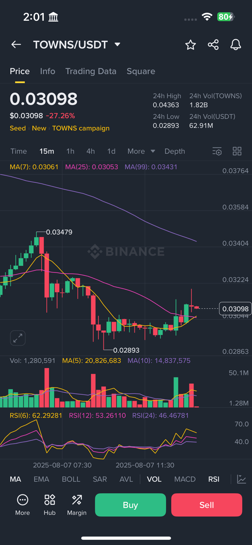 #TOWNS #CryptoAlert #LaunchDip #TradeSmart