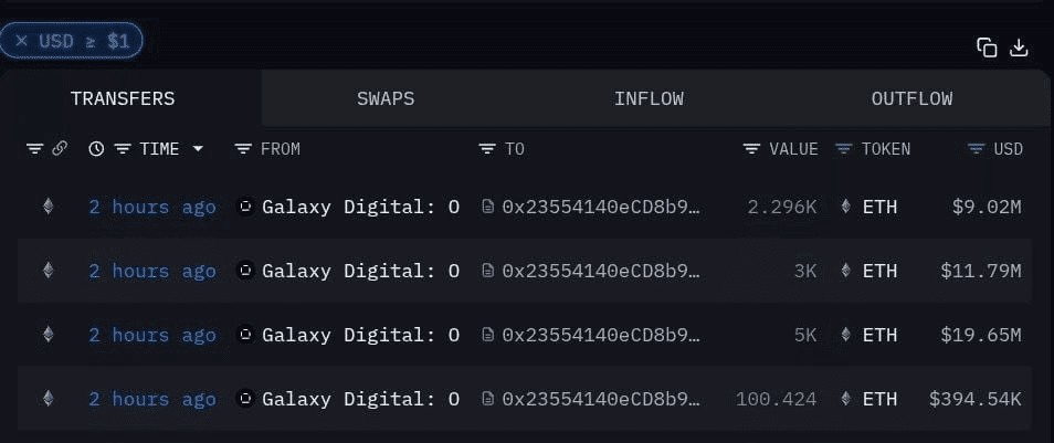 Plus tôt dans la journée, une baleine a acquis 10,4K ETH — environ 40,5 millions de dollars — par le biais d'un accord OTC.