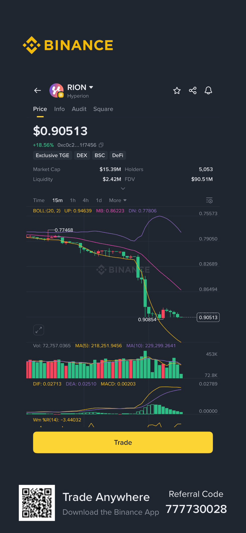 Le marché des cryptomonnaies est connu pour son action rapide, et aujourd'hui, tous les yeux sont rivés sur le token Hyperion ($RION). Sa récente montée sur Binance a suscité l'excitation des traders et des investisseurs. Cet article décomposera l'action des prix du token RION et expliquera comment vous pouvez commencer votre propre parcours dans ce marché dynamique.