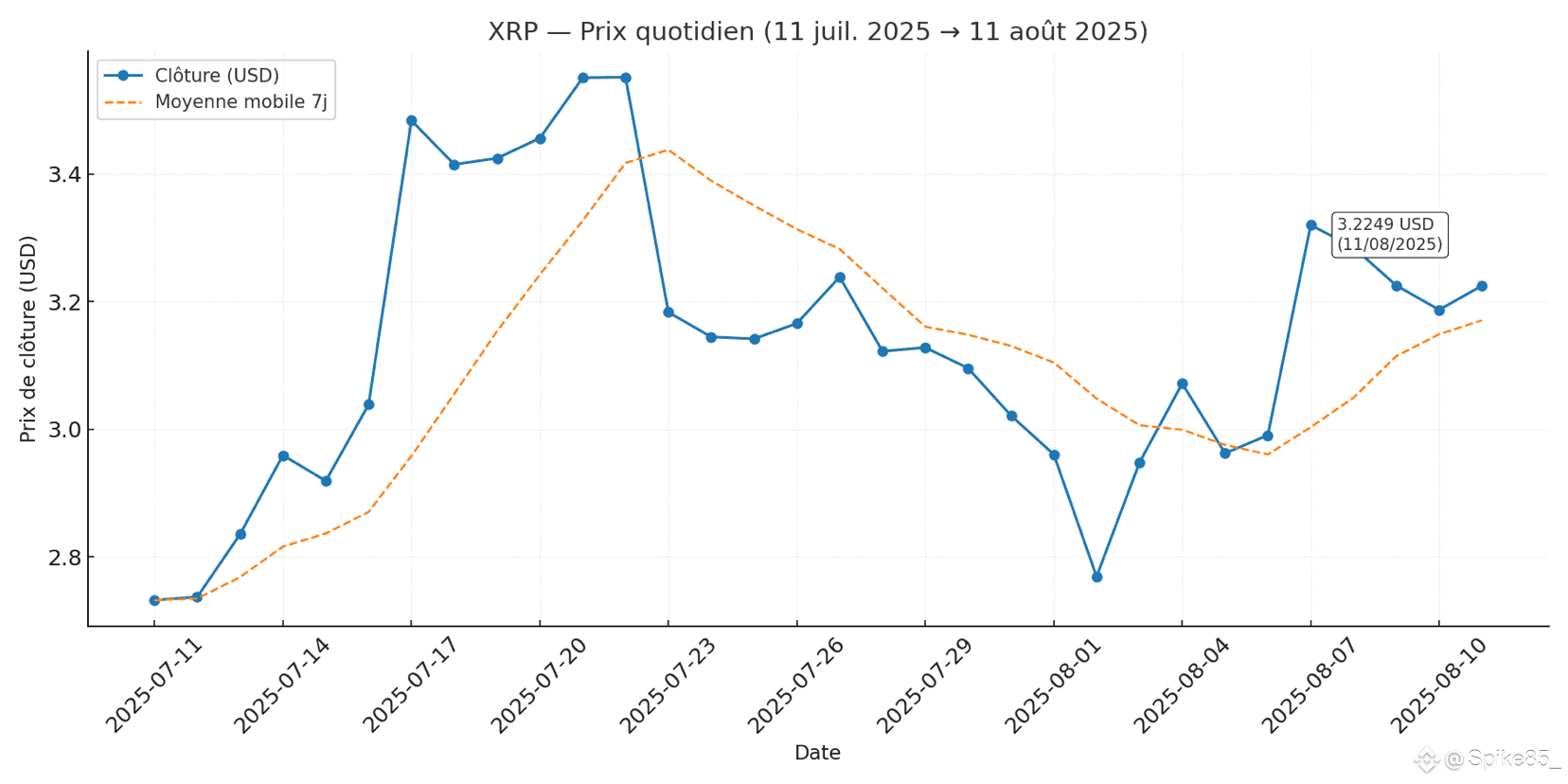 Actuellement à environ 3,20 USD, le XRP montre une reprise technique en forme de “V”, soutenue par un support solide vers 2,32 USD et un bond notable des intérêts ouverts . Certains analystes projettent une hausse potentielle pouvant atteindre +60 % (à ~4,47 USD) dans les prochaines semaines  . D’autres, plus optimistes, estiment une flambée spectaculaire jusqu’à +333 % d’ici 40 jours, selon Tony “The Bull” Sev-erino  . Néanmoins, ces prévisions majorantes restent spéculatives ; le respect des zones de support (autour de 3,15 – 3,20 USD) sera clé pour maintenir une trajectoire ascendante.