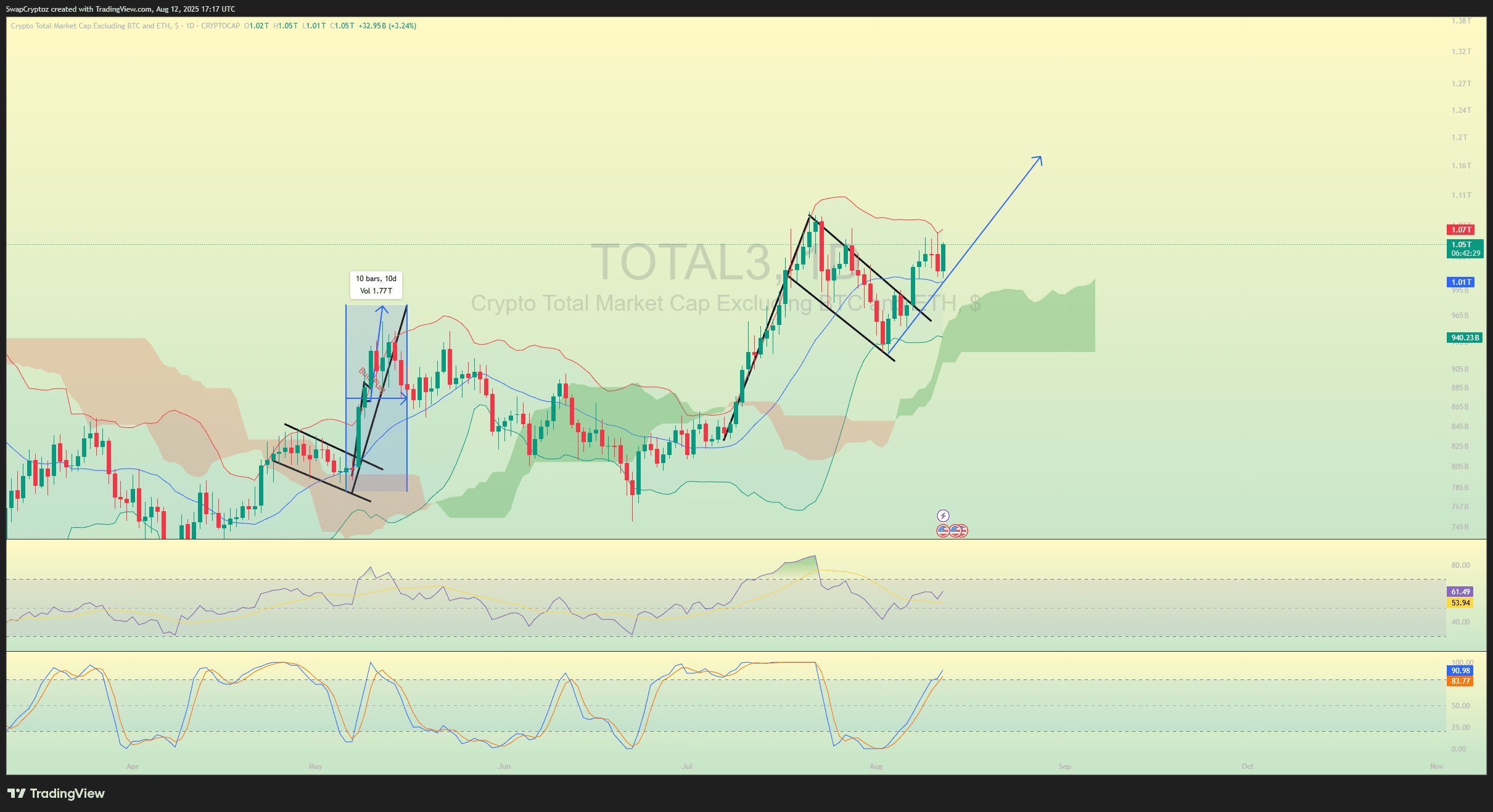 Ce graphique de la capitalisation totale du marché des cryptomonnaies montre un motif de drapeau haussier, suggérant que le marché est susceptible de sortir et de poursuivre sa tendance à la hausse. Donc, je pense que la pièce ARPA est également haussière.