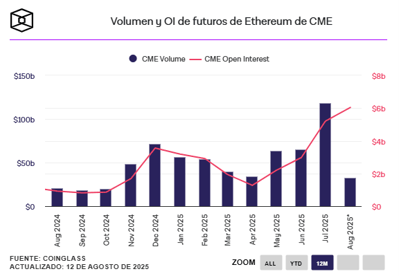 📈 L'intérêt ouvert (OI) au CME a également atteint un record après avoir augmenté de 75 % pour atteindre 5,210 milliards de dollars.