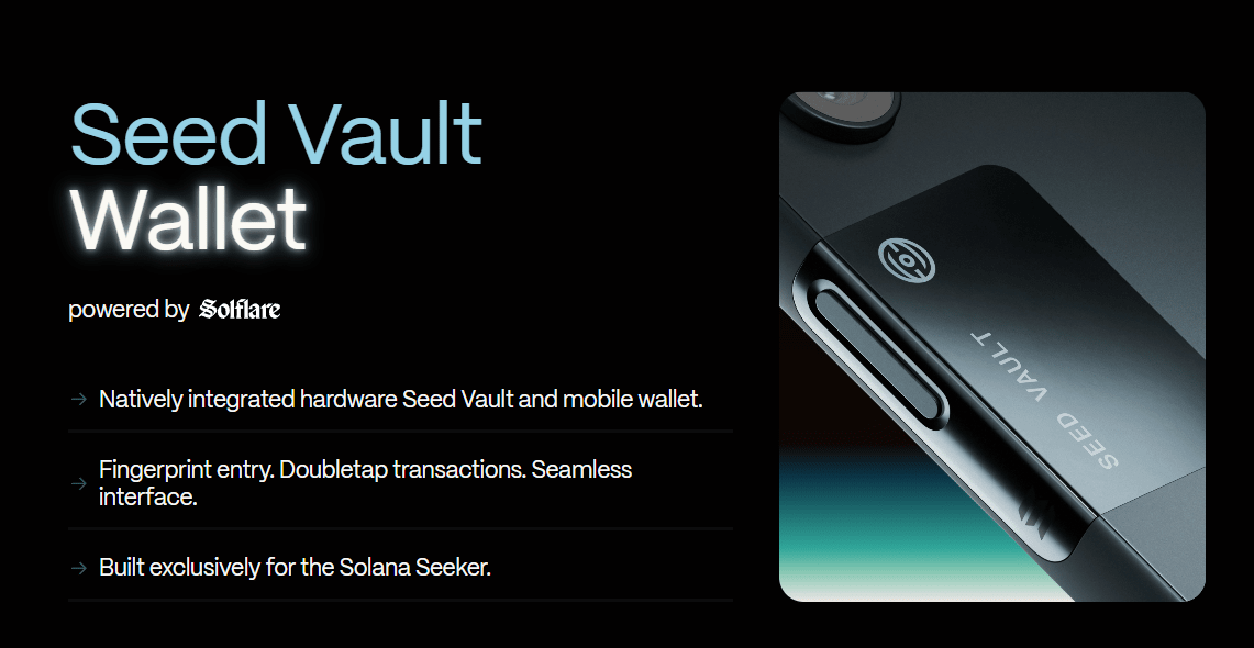 Le Seed Vault Wallet, alimenté par Solflare, fournit un accès sans couture avec entrée par empreinte digitale et confirmation de transaction intuitive "double-tap" — rendant la signature crypto aussi simple qu'un tapotement de votre pouceSolanaFloorsolanalabs.com