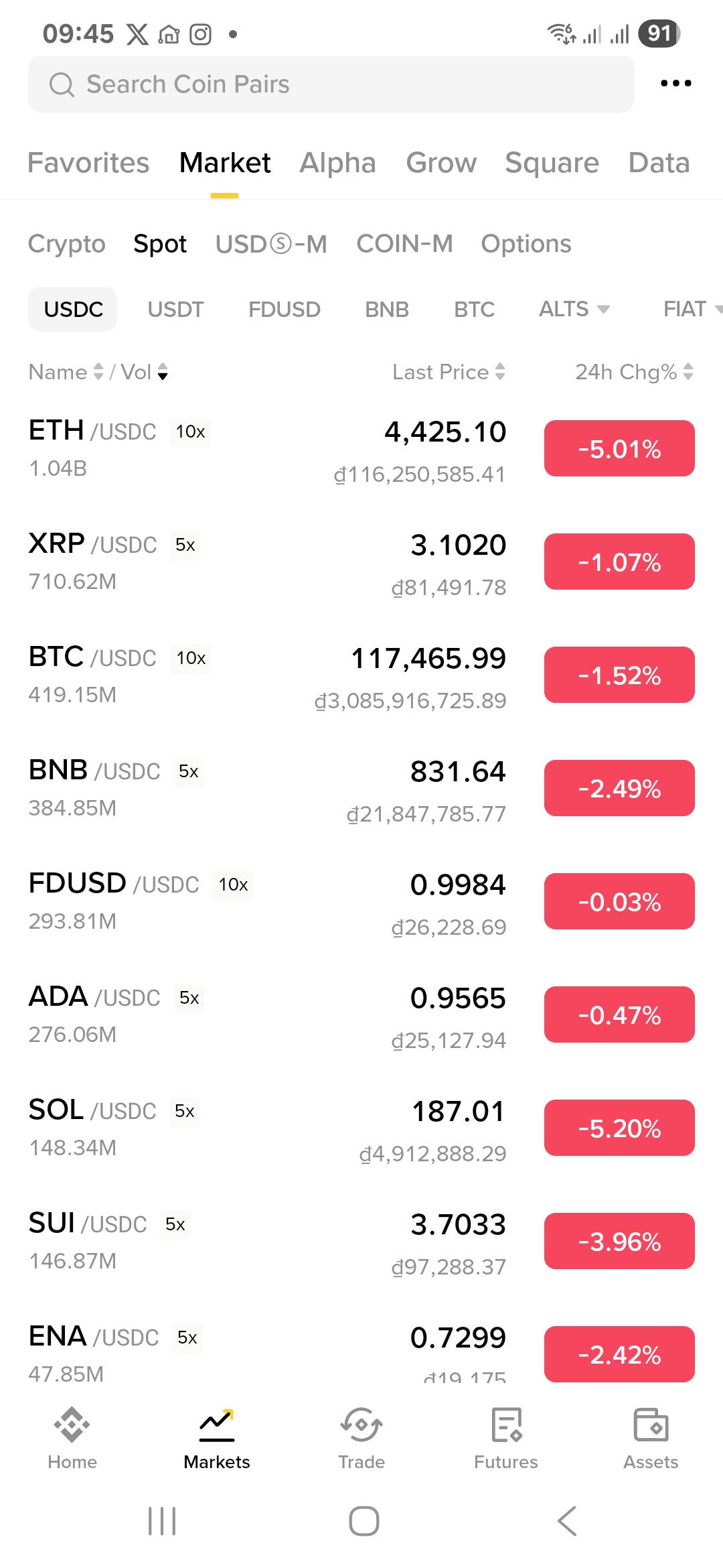 D'après l'image fournie, il est clair que le marché des cryptomonnaies connaît une baisse aujourd'hui, avec la plupart des actifs majeurs affichant des pourcentages de changement négatifs sur 24 heures.